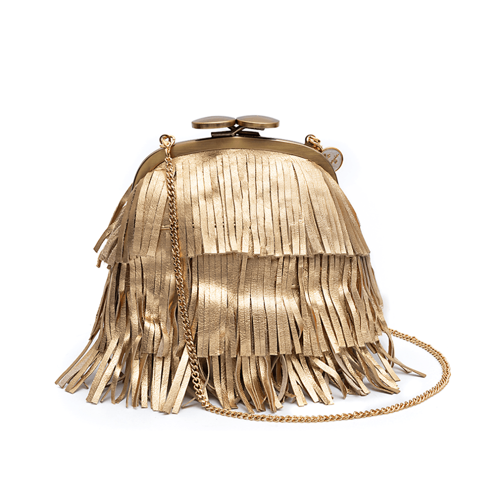 Bolsa Amanda Ouro Franjas Metalizado Ouro
