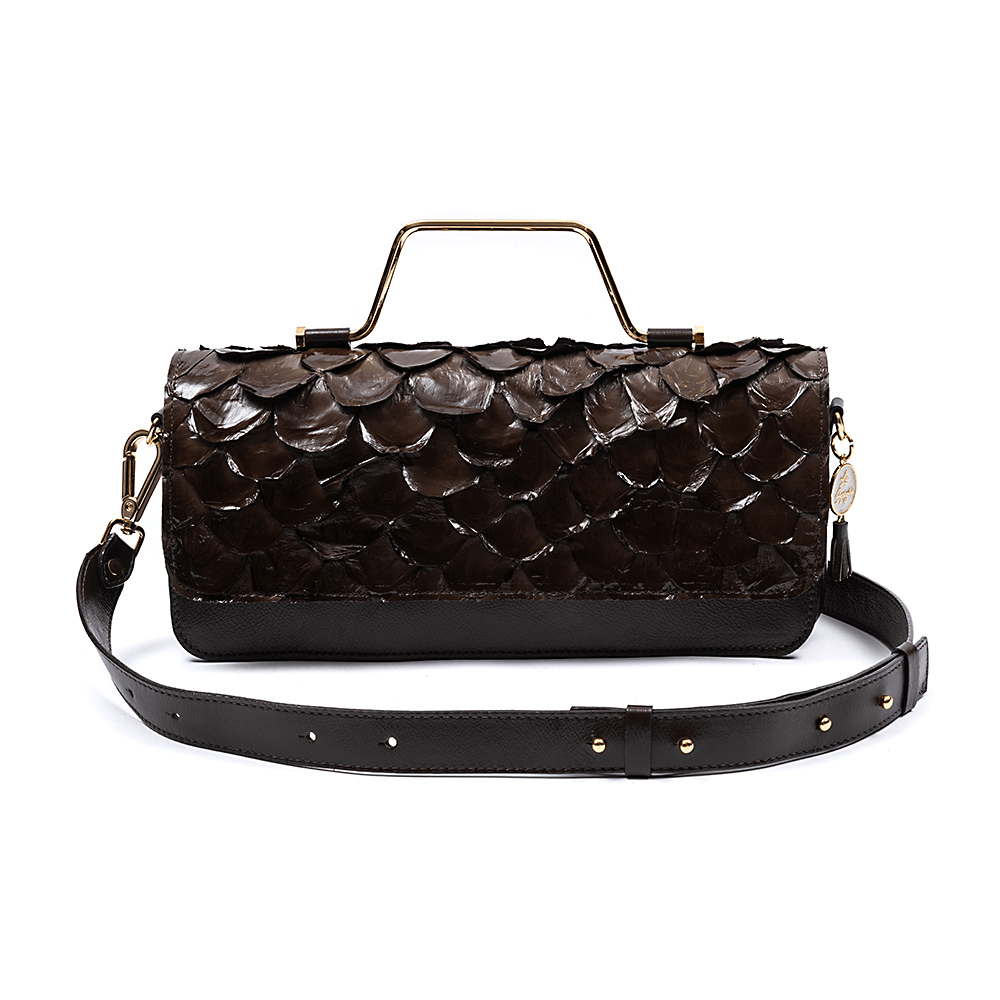 Bolsa La Spezia confeccionada em couro bovino e pirarucu, Fechamento por imã e metais. Possui alça de metal, e alça tiracolo larga removível . Seu interior é confeccionado em forro com estampa exclusiva La Spezia e possui espaço para pequenos objetos e porta cartão. Seu design contemporâneo é perfeito para compor qualquer look com muita personalidade.