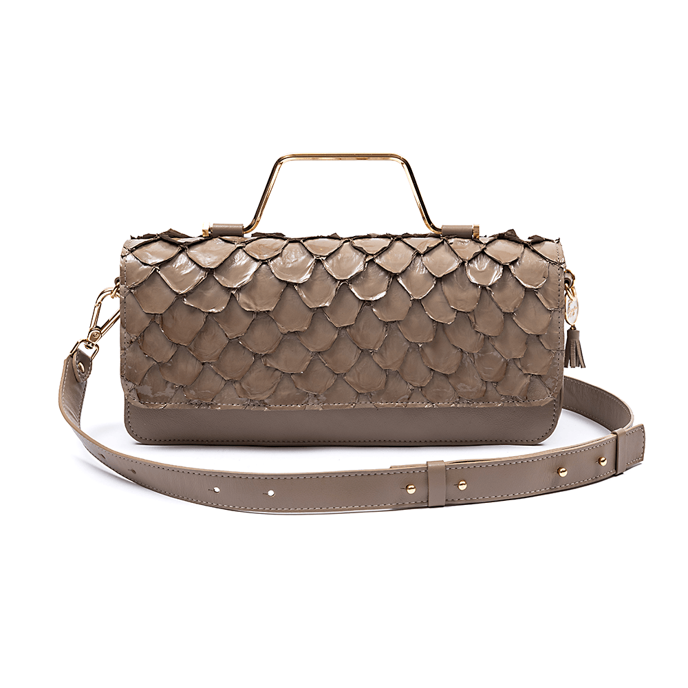 Bolsa La Spezia confeccionada em couro bovino e pirarucu, Fechamento por imã e metais. Possui alça de metal, e alça tiracolo larga removível . Seu interior é confeccionado em forro com estampa exclusiva La Spezia e possui espaço para pequenos objetos e porta cartão. Seu design contemporâneo é perfeito para compor qualquer look com muita personalidade.