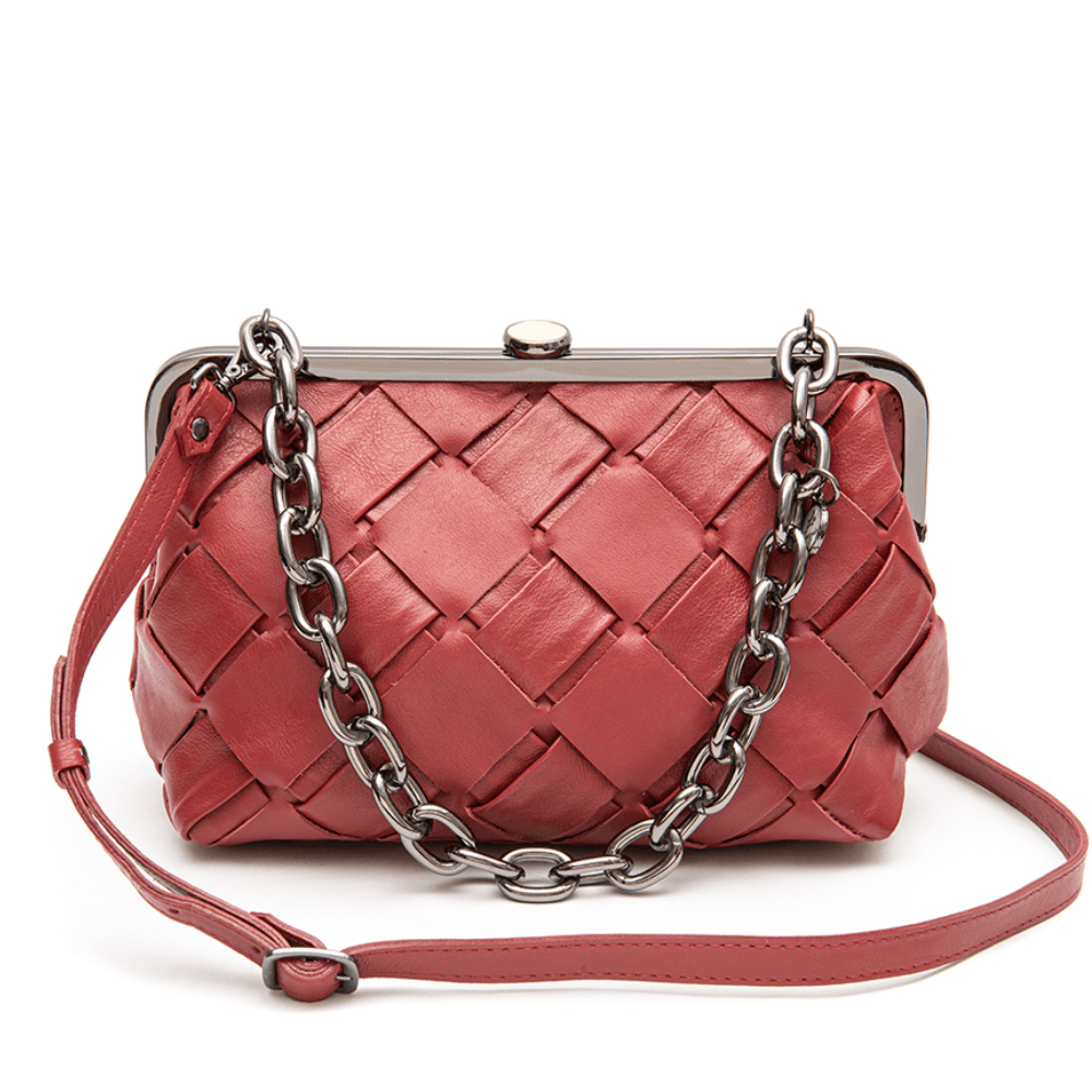 Bolsa La Spezia confeccionada em couro bovino, com detalhe trançado a mão por todo corpo da peça. Possui alça de corrente em elos, e alça tiracolo fina ajustável em couro bovino. Fechamento por armação de metal com detalhe de resina; Seu interior é confeccionado em forro com estampa exclusiva La Spezia e acompanha um porta cartão, escolha perfeita para estilizar qualquer look.