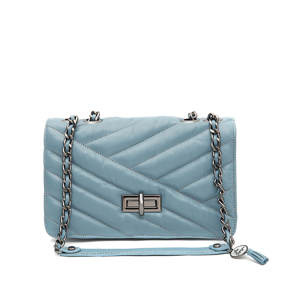 Bolsa La Spezia confeccionada em couro bovino. Fechamento por torniquete e metais ônix. Possui alça dupla de corrente que pode ser ajustada em dois tamanhos, tiracolo ou ombro. Seu interior é confeccionado em forro com estampa exclusiva La Spezia e possui três divisões internas, dois espaços para pequenos objetos e porta cartão. Seu design clássico é perfeito para sofisticar qualquer look.