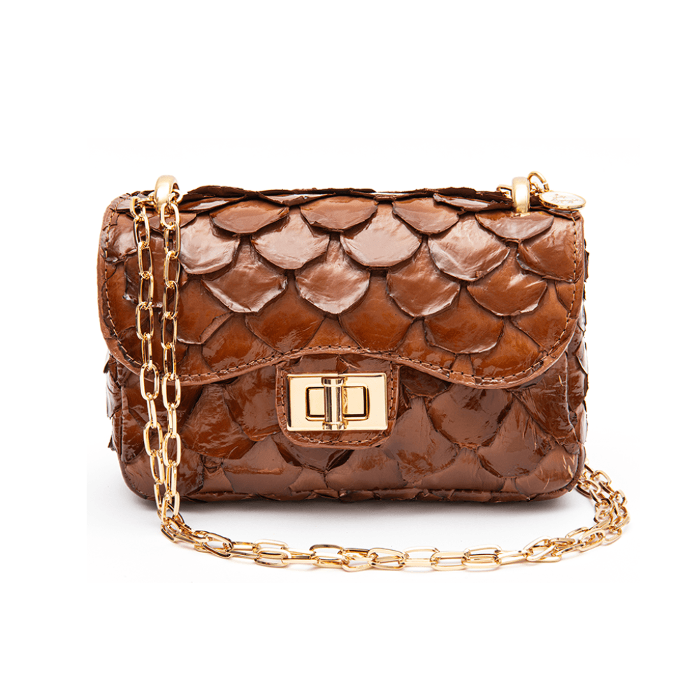 Bolsa Micro Sílvia Ouro Pirarucu Conhaque