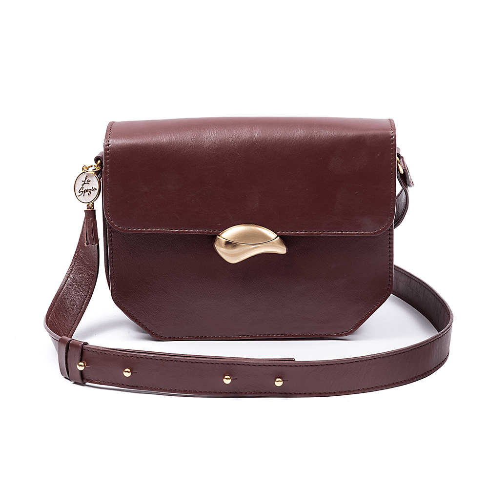Bolsa La Spezia confeccionada em couro. Fechamento por fecho de imã exclusivo La Speziaem metal ouro. Possui alça tiracolo em couro, Seu interior é confeccionado em forro com estampa exclusiva La Spezia, possui espaço para pequenos objetos e porta cartão. Seu shape moderno é perfeito para compor looks cheios de estilo.