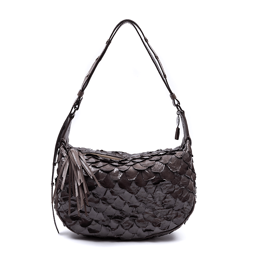 Bolsa La Spezia confeccionada em couro de pirarucu, possui alça tiracolo de couro bovino legitimo com regulagem de dois tamanhos em botões de pressão. Fechamento por zíper com detalhe de chocalho no fecho e na alça, seu interior é confeccionado em forro com estampa exclusiva La Spezia e possui porta cartão. Seu design moderno é perfeito para agregar estilo à qualquer look.
