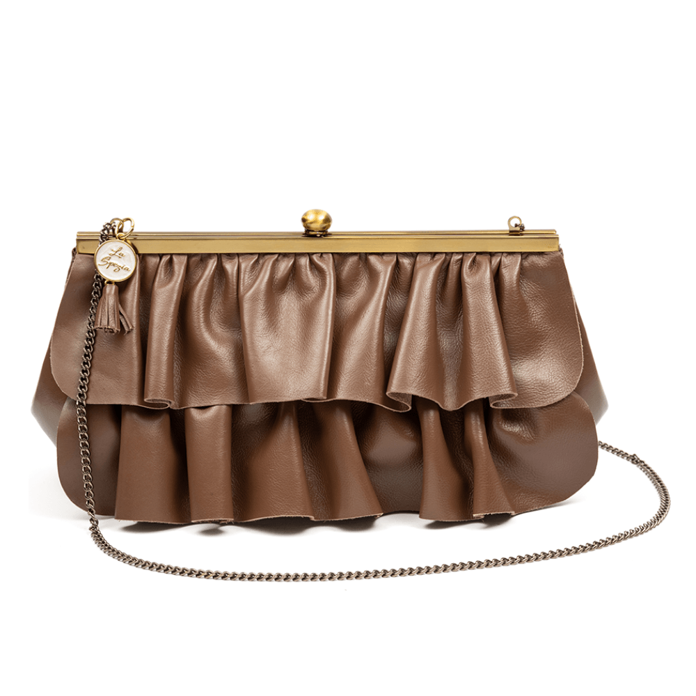 Bolsa La Spezia confeccionada em couro Bovino. Fechamento por armação de metal. Seu design e composto por Babados em couro bovino aplicados no corpo da peça. Possui alça de ombro removível em corrente, podendo assim, também ser usada como clutch. Seu interior é confeccionado em forro com estampa exclusiva La Spezia e possui espaço para pequenos objetos. Escolha perfeita para sofisticar qualquer look. Comprimento: 35cm Altura: 17cm Profundidade: 10cm